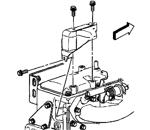 ^ Remove the nuts holding the brace to the intake stud and the engine block.