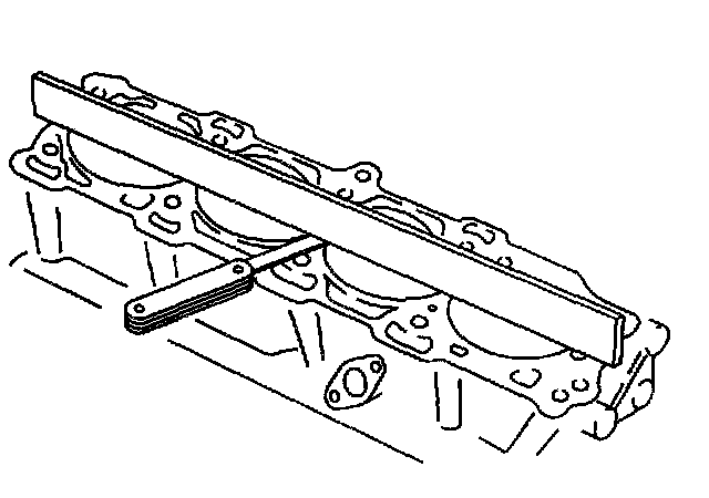 8. Use a straight edge and a feeler gage to check the deck surface for flatness. Carefully machine minor irregularities. Replace the block if more than 0.254 mm (0.010 inch) must be removed.