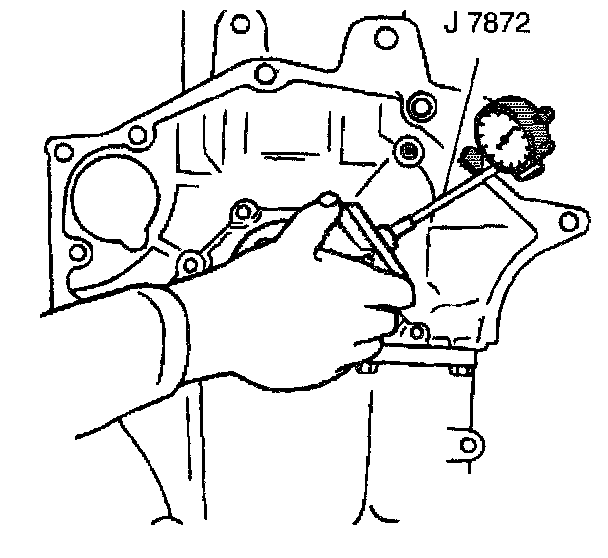 11.1. Temporarily install the crankshaft. Measure the crankshaft flange runout using the J 7872.