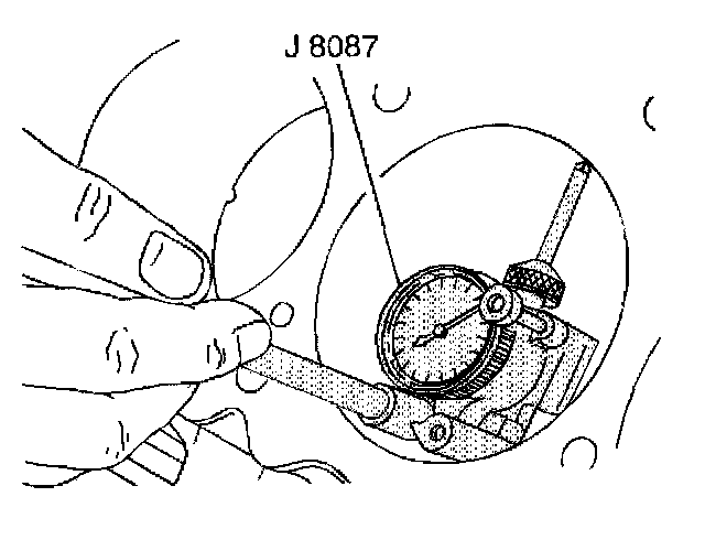 12. Inspect the crankshaft main bearing bores. Use the J 8087 to measure the bearing bore concentricity and alignment at the following locations: