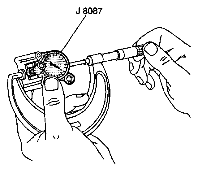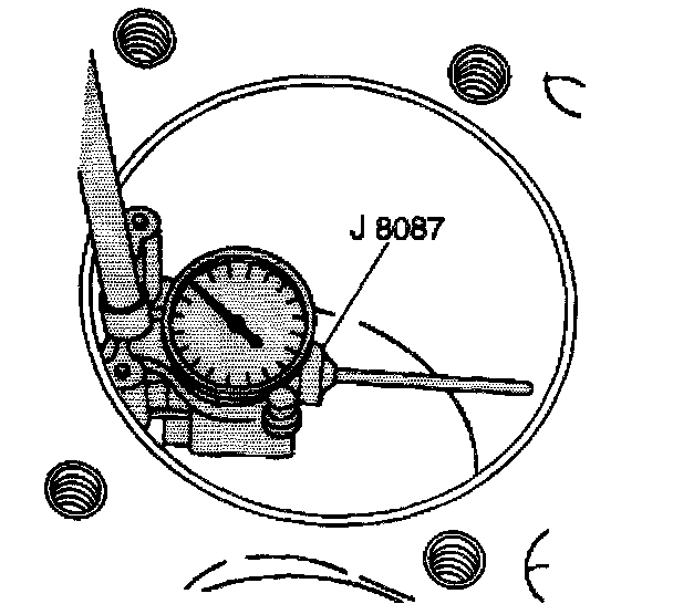 3. Using the J 8087 measure the cylinder bore diameter. Measure at a point 64 mm (2.5 inch) from the top of the cylinder bore.