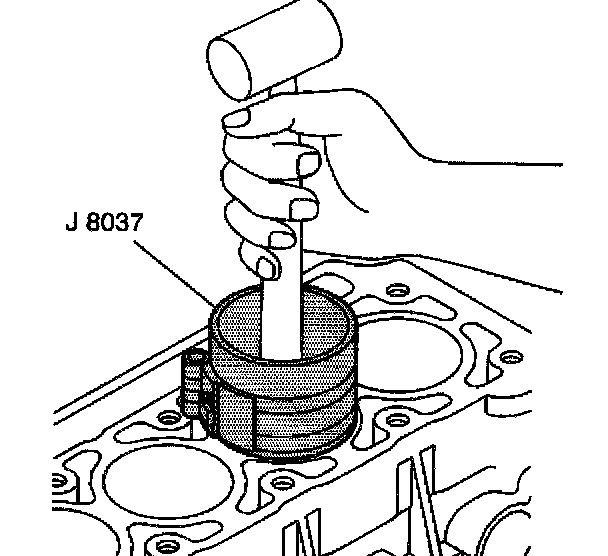 2.8. Hold the J 8037 against the engine block until all the rings have entered the cylinder bore.