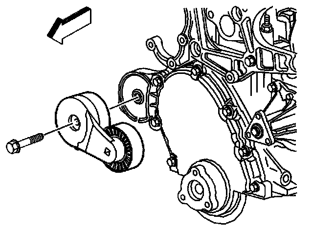 5. Install the accessory drive belt tensioner and bolt.