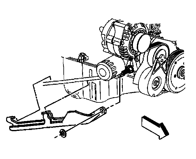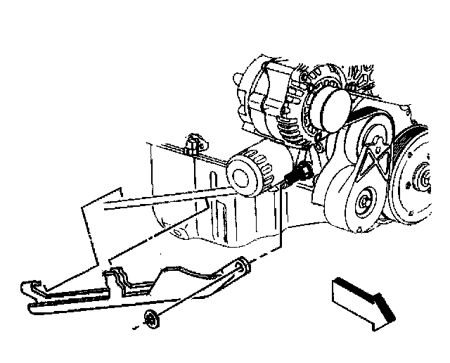 11. Working through the wheelhouse opening, remove the generator rear brace using the following procedure: