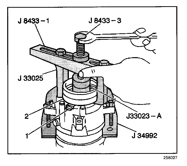 9. Install the J 8433-1 and the J 33025.