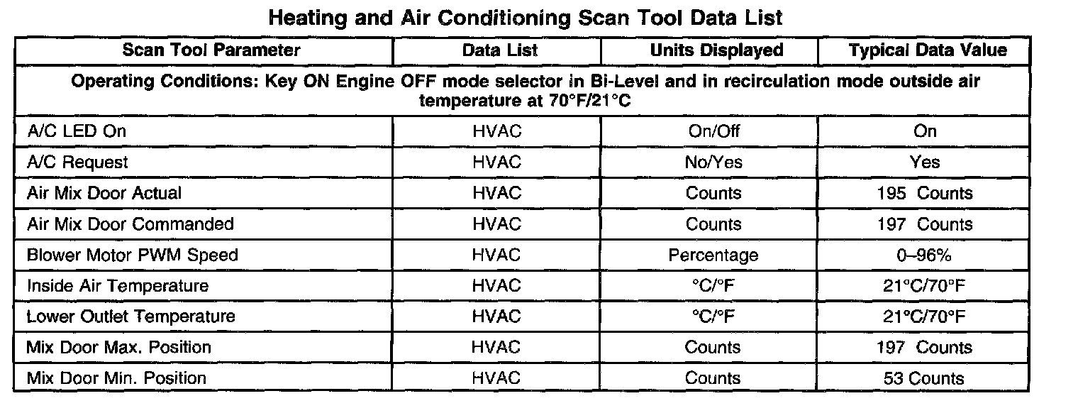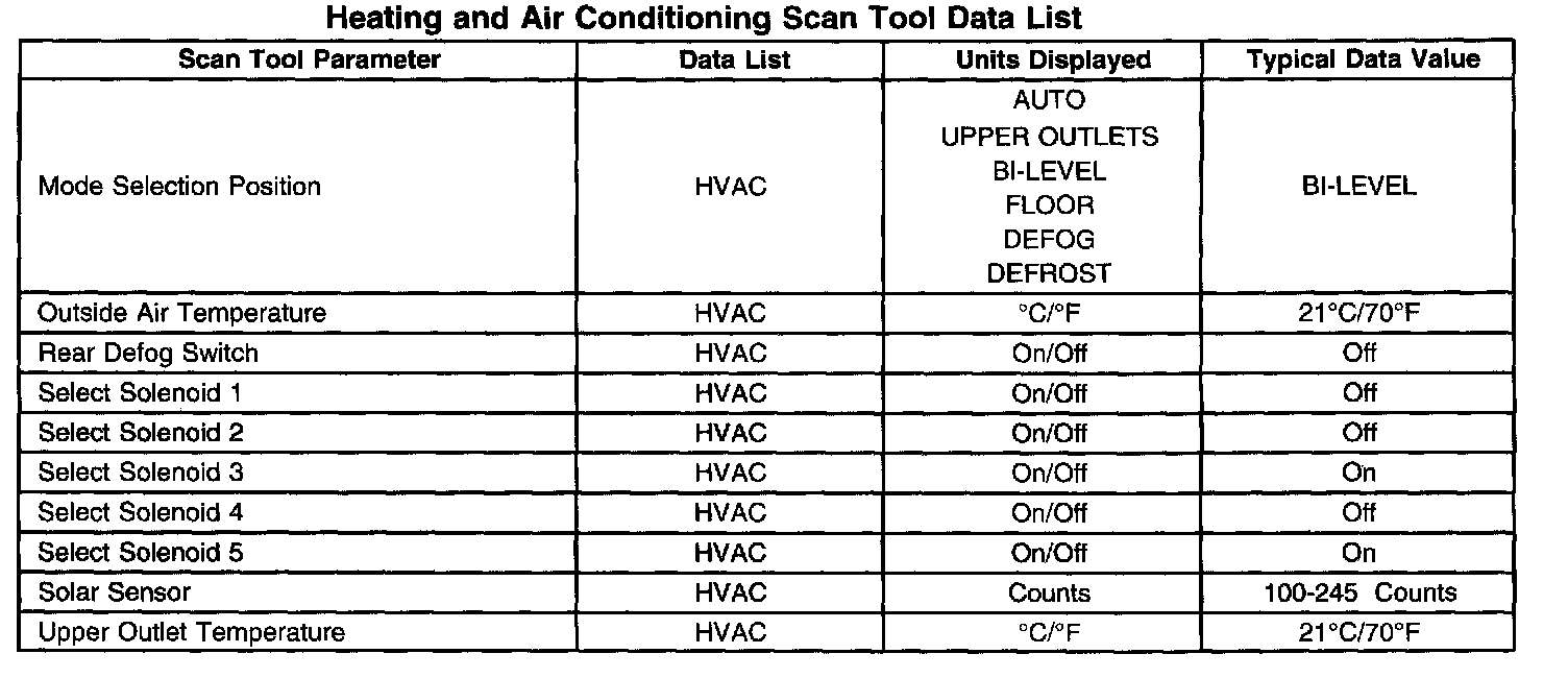 Heating And Air Conditioning Scan Tool Data List (Part 2 Of 2):