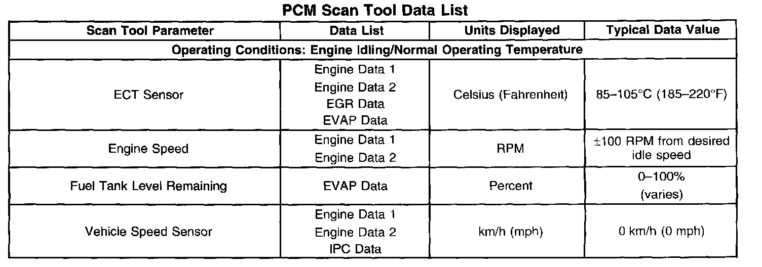 Scan Tool Data List - Powertrain Control Module (PCM)