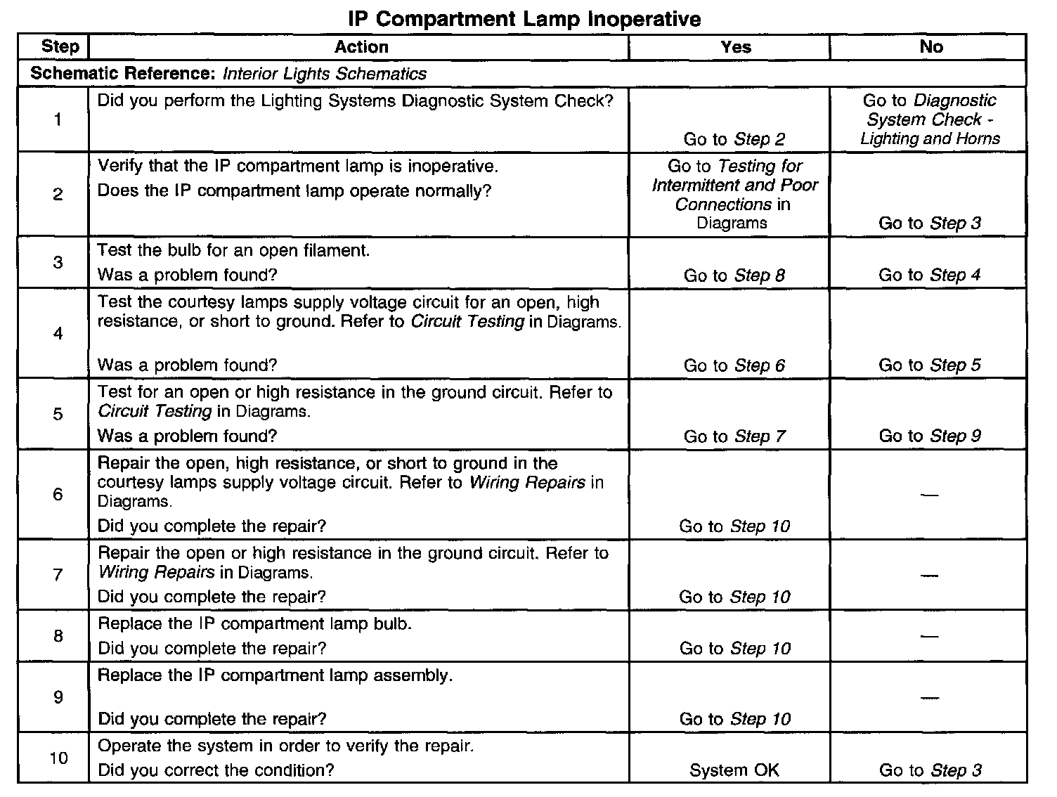 IP Compartment Lamp Inoperative