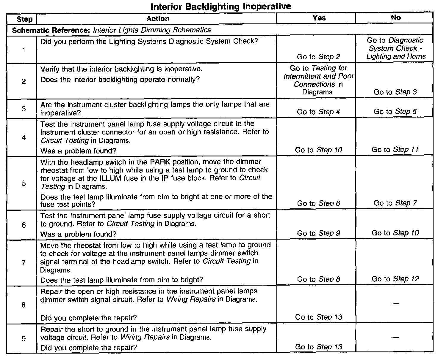 Interior Backlighting Inoperative