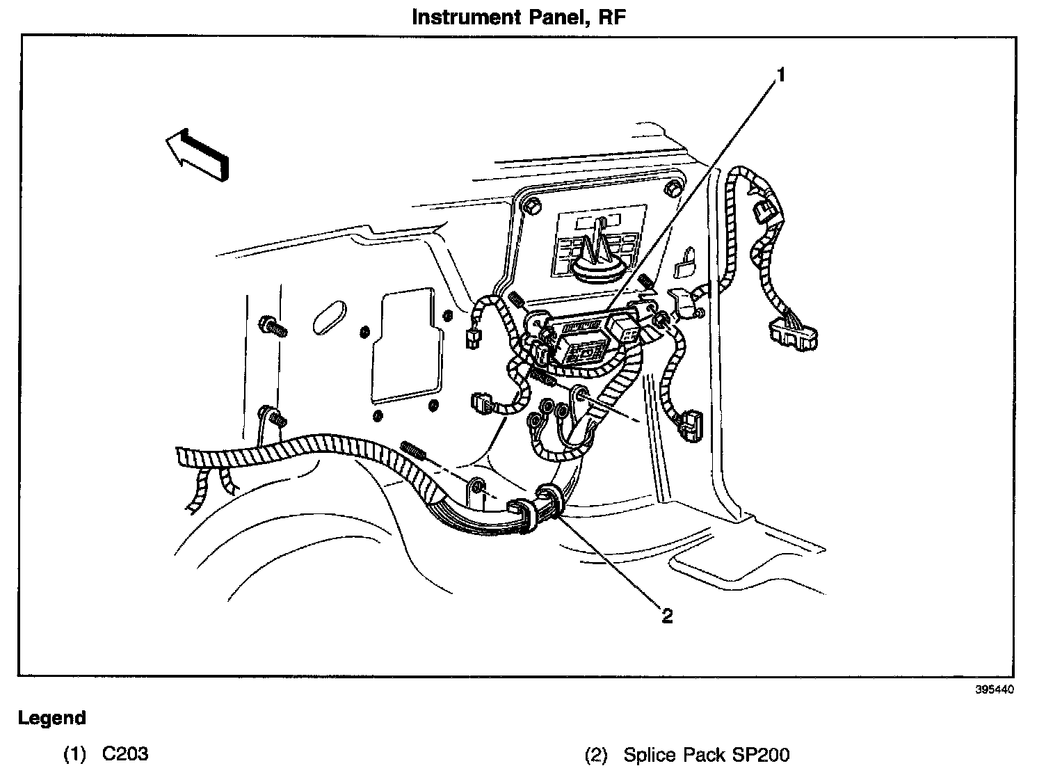 (CKT 41, CKT 241, CKT 341, CKT 817) Strapped to the body harness, in the center front of the I/P, to the right of SP204