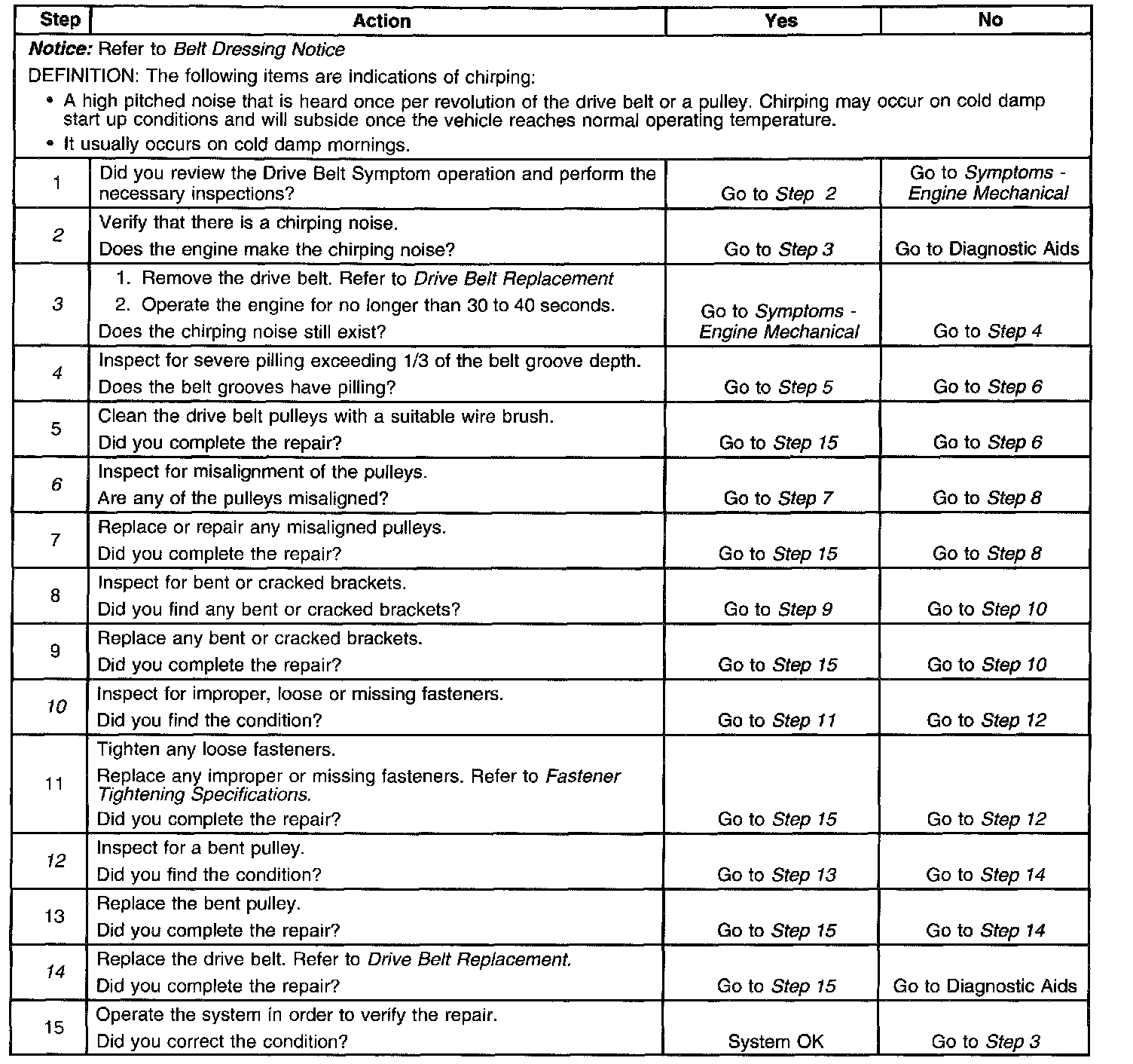 Drive Belt Chirping DiagnosisDiagnostic Aids