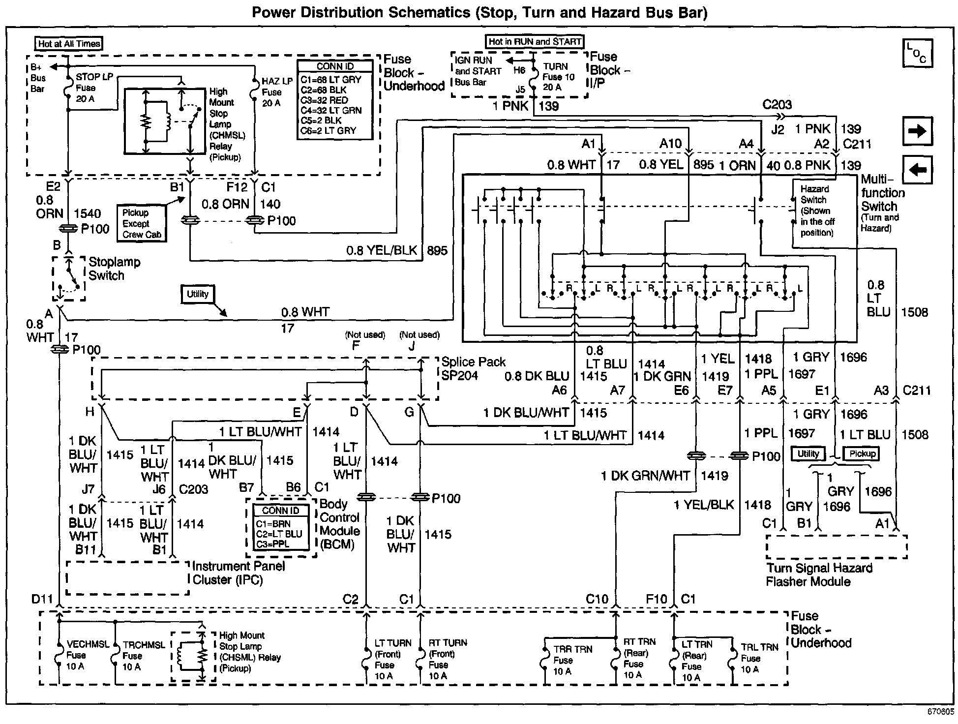 Power Distribution Schematics: Stop, Turn And Hazard Bus Bar: