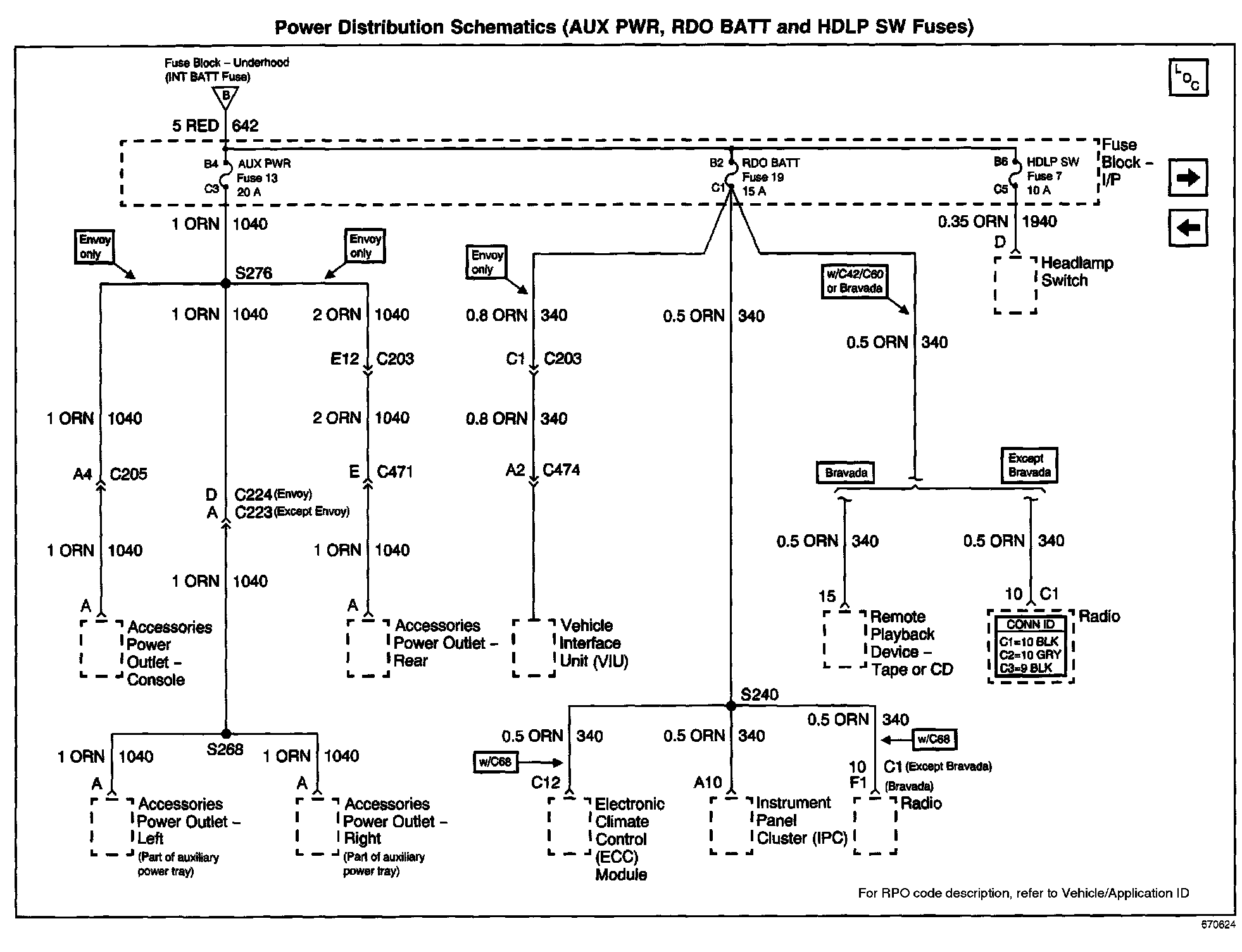Power Distribution Schematics: AUX PWR, RDO BATT And HDLP SW Fuses: