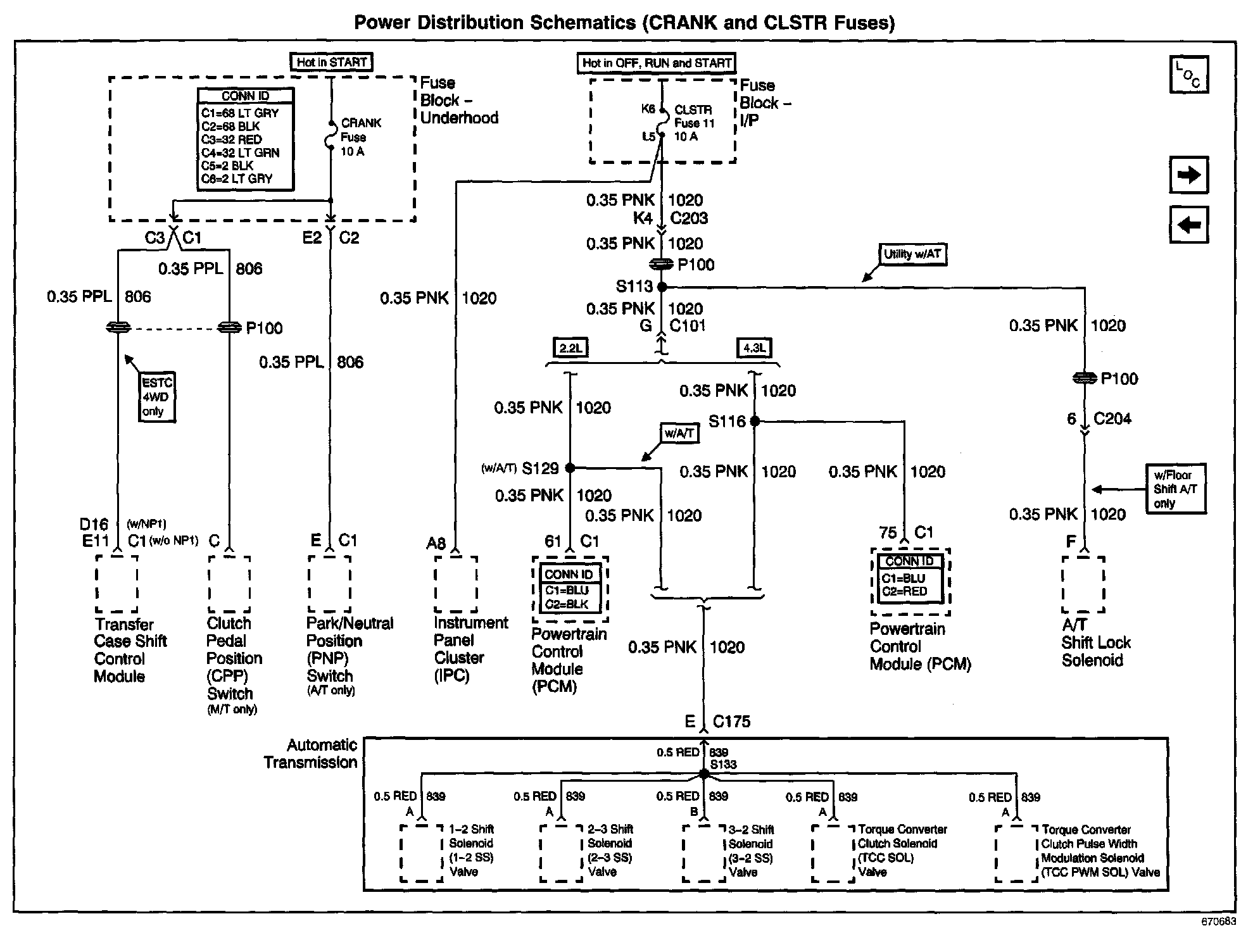 Power Distribution Schematics: CRANK And CLSTR Fuses: