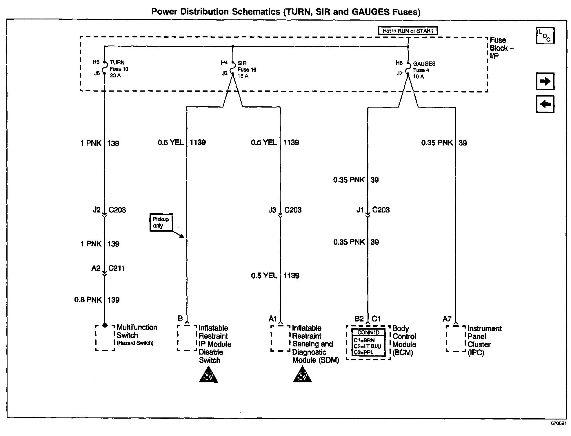 Power Distribution Schematics: TURN, SIR And GAUGES Fuses: