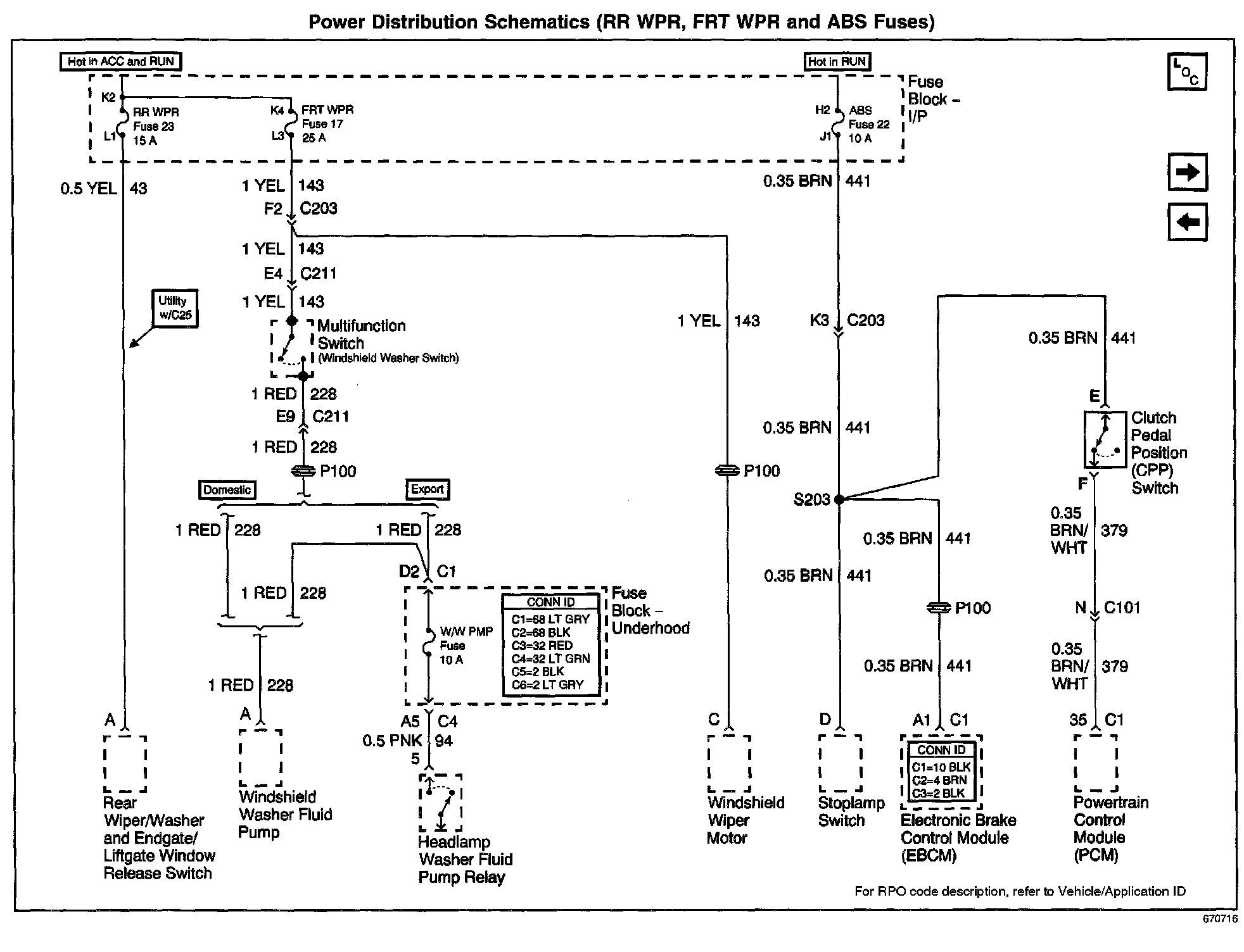 Power Distribution Schematics: RR WPR, FRT WPR And ABS Fuses: