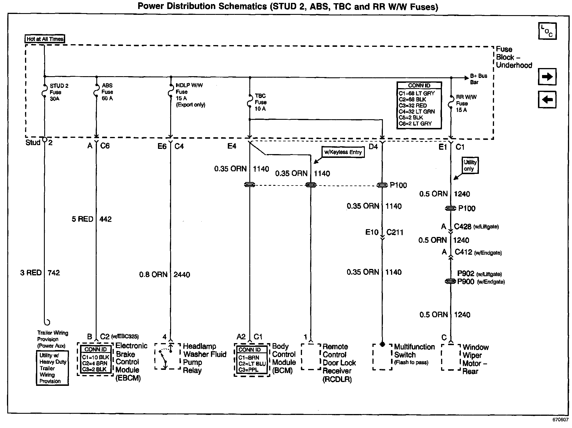 Power Distribution Schematics: STUD 2, ABS, TBC And RR W/W Fuses: