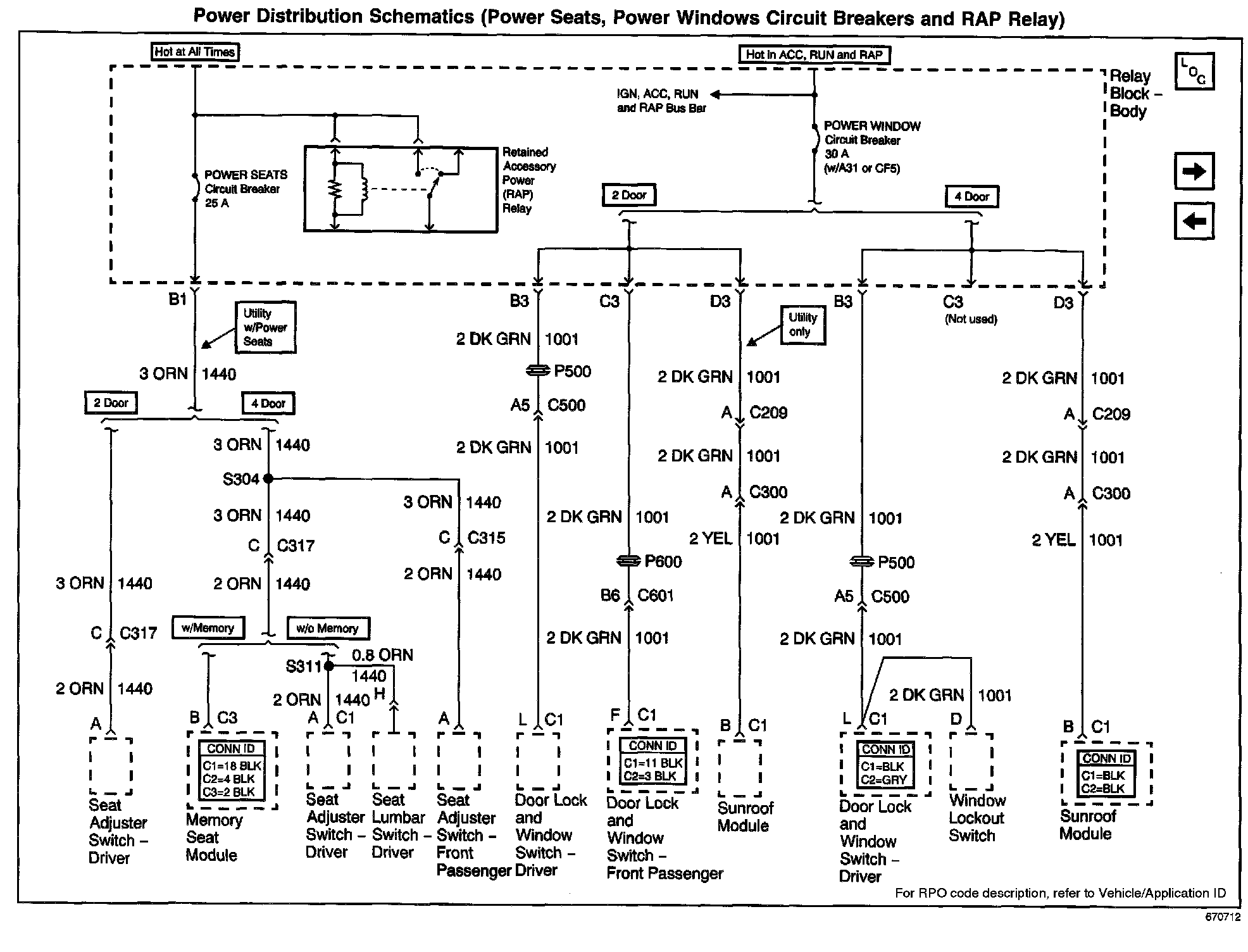 Power Distribution Schematics: Power Seats, Power Windows Circuit Breakers And RAP Relay: