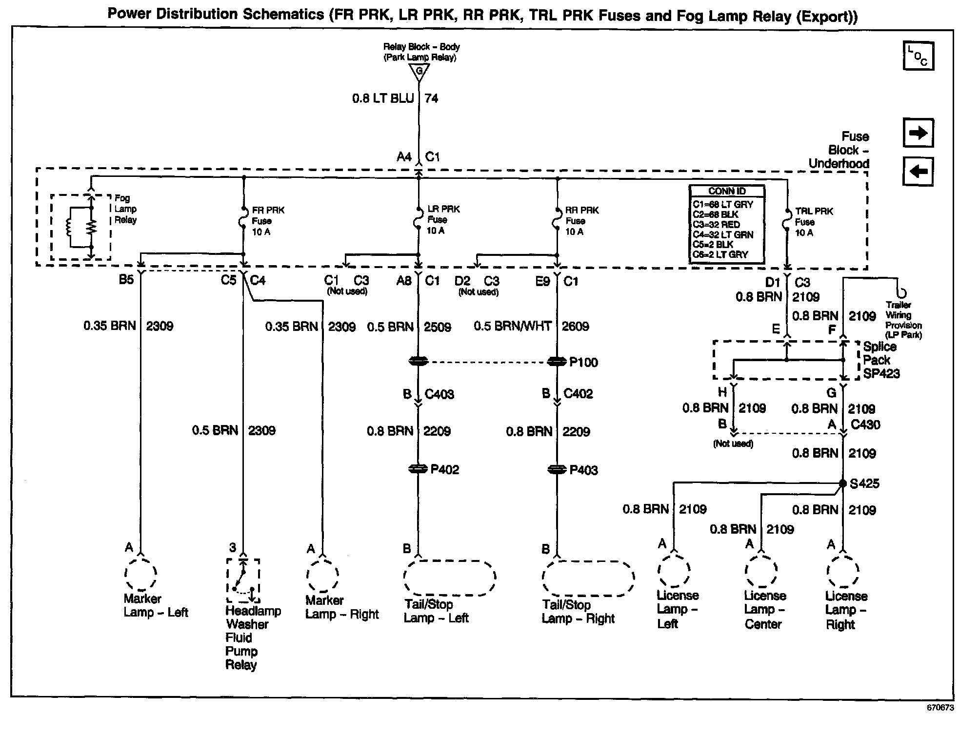 Power Distribution Schematics: FR PRK, LR PRK, RR PRK, TRL PRK Fuses And Fog Lamp Relay (Export):