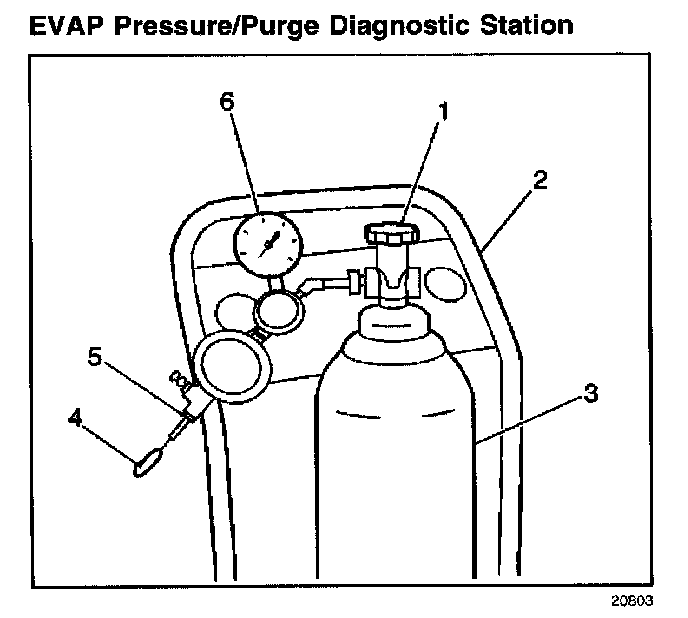 The EVAP Pressure/Purge Diagnostic Station J 41413 is used to help locate leaks in the EVAP system. The diagnostic station provides a clean, dry, regulated supply of nitrogen to pressurize the EVAP system. Refer to the directions on the cart (2) for proper operation.