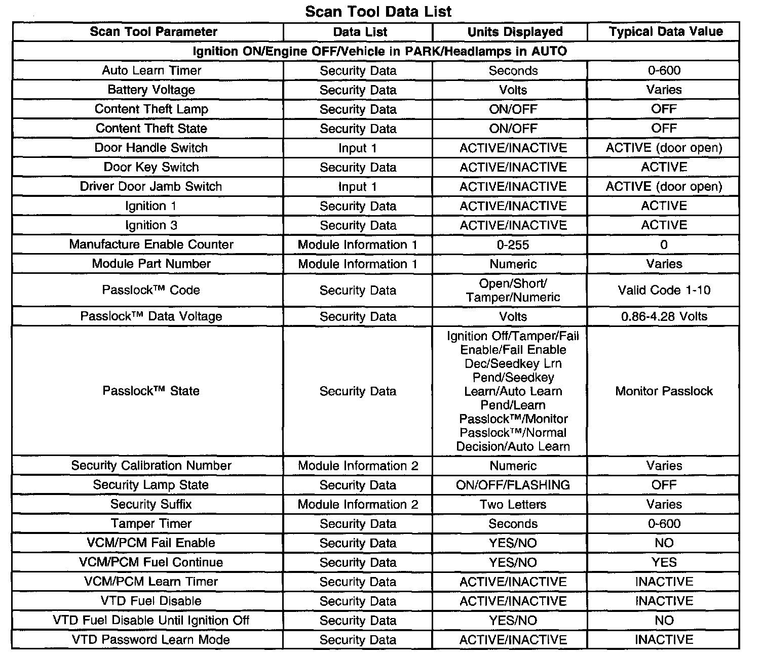 Scan Tool Data List: