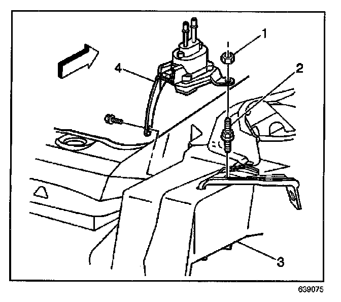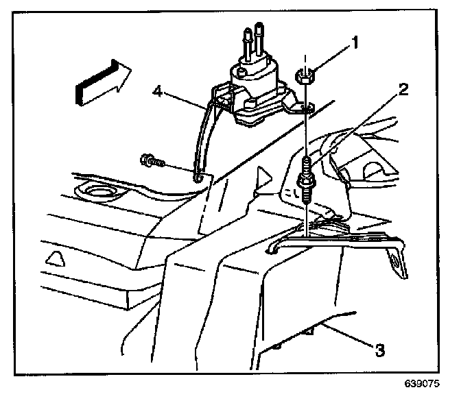 4. Remove the fuel composition sensor fuel composition sensor (FCS) attachment nut (1).