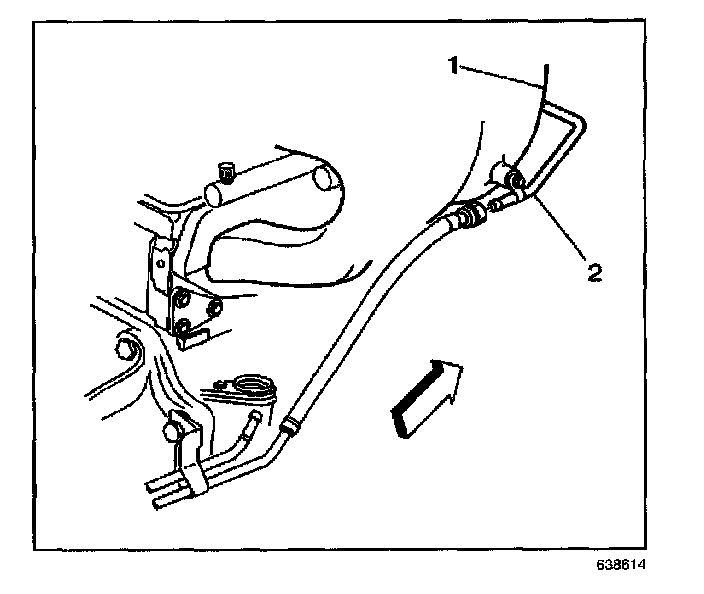 5. Remove the fuel feed inlet pipe at the rail (2). Refer to Quick Connect Fitting(s) Service (Plastic Collar).