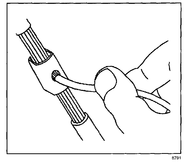 - Strip approximately 7.5 mm (5/16 in) of insulation from each wire to be spliced.