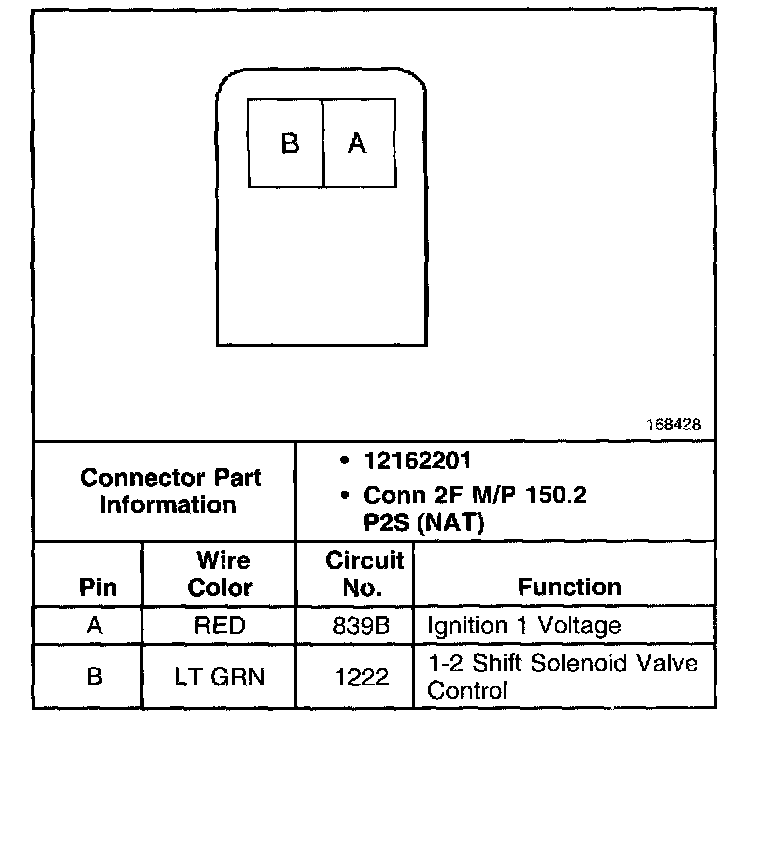 1-2 Shift Solenoid (SS) Valve Connector, Wiring Harness Side