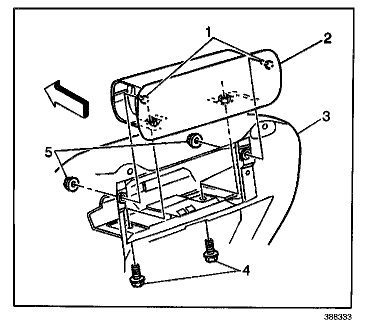 4. Remove the fasteners (4, 5) that retain inflatable restraint module to the instrument panel.