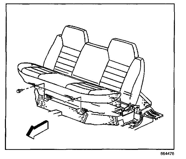 REMOVAL PROCEDURE1. Remove the 2 bolts securing the rear seat bottom cushion to the floor.
