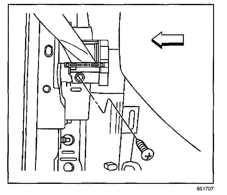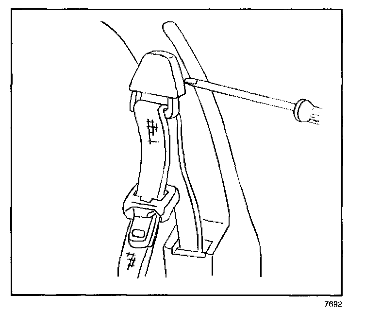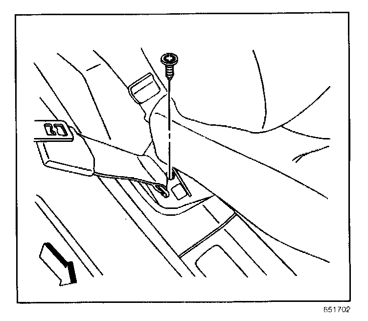6. Remove the bolt that retains the seat belt retractor assembly to the vehicle.