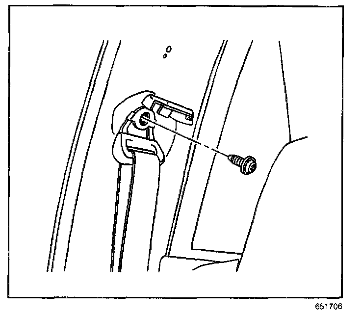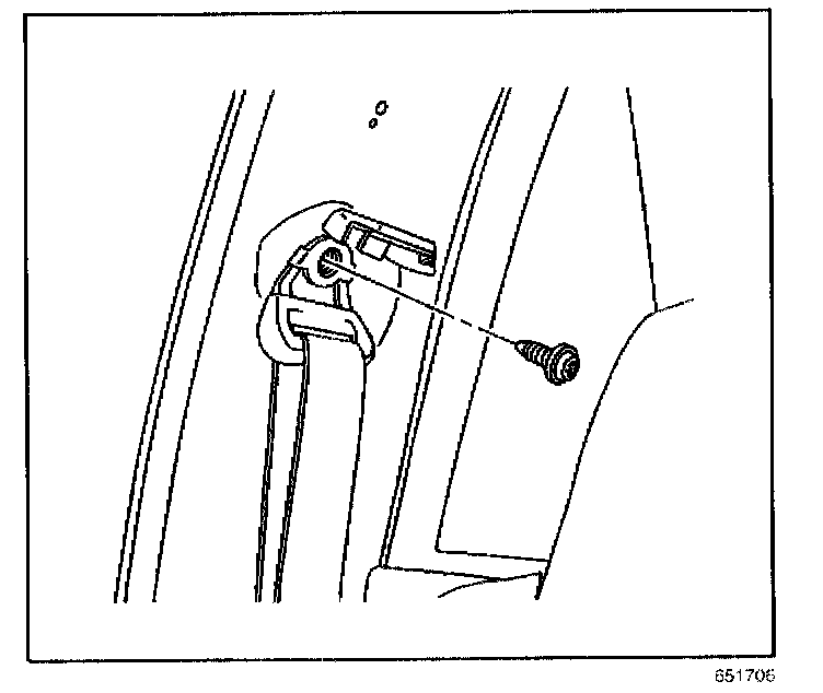 3. Remove the bolt that retains the upper seat belt anchor plate to the vehicle.