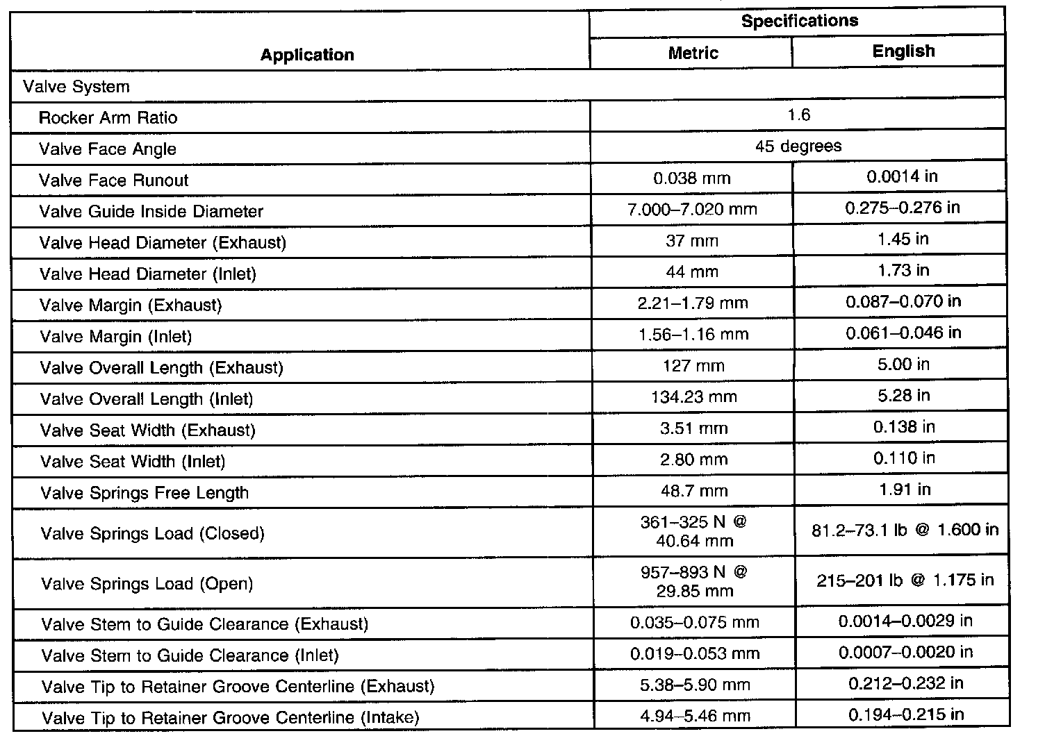 Engine Mechanical Specifications