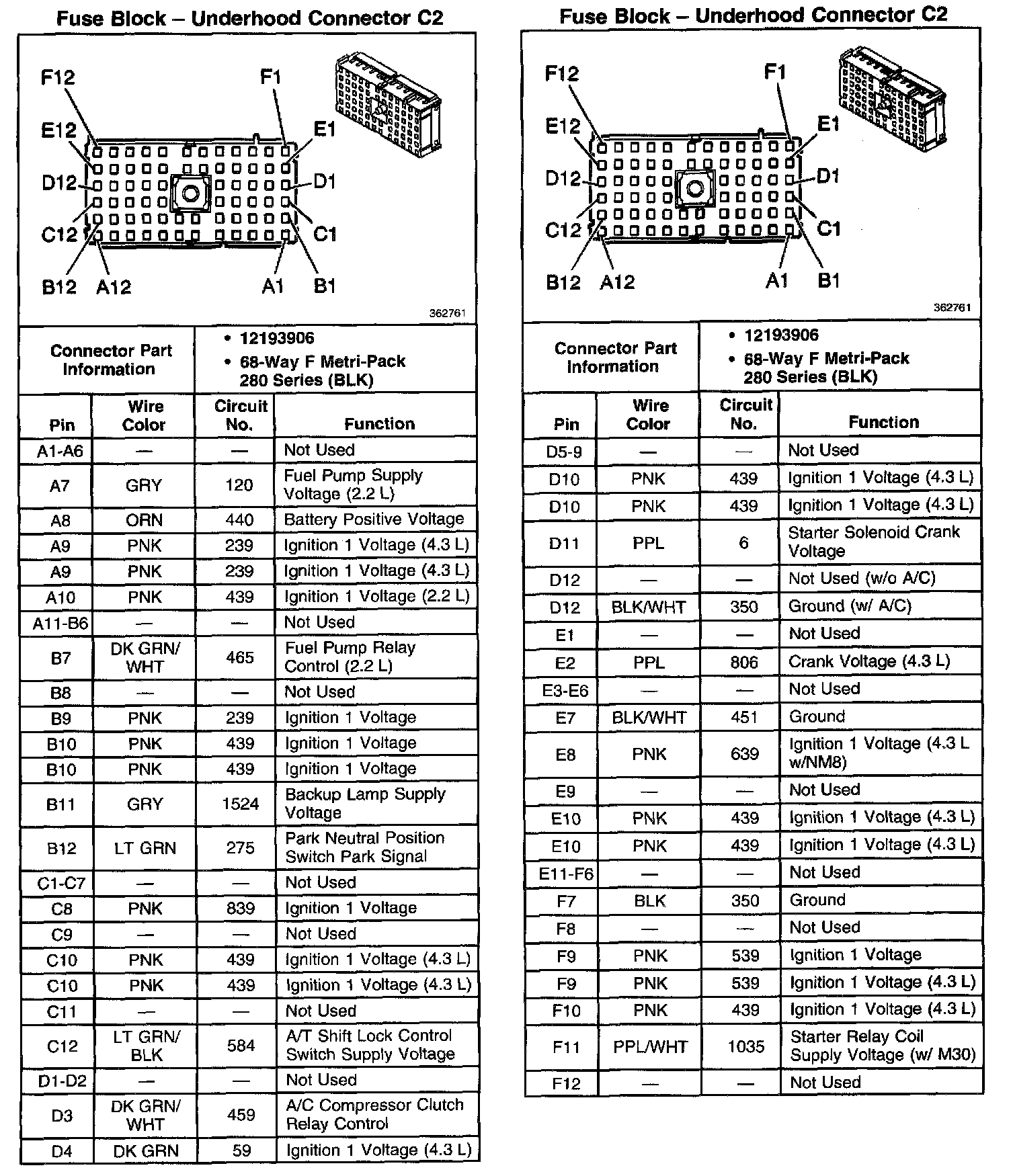 Fuse Block - Underhood Connector C2: