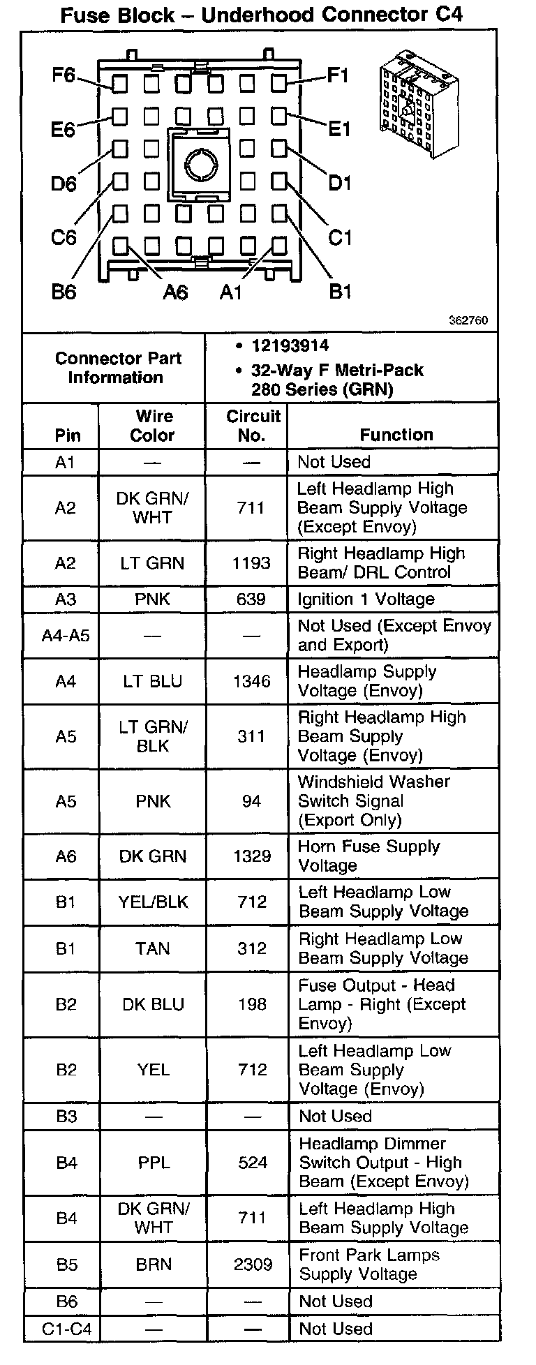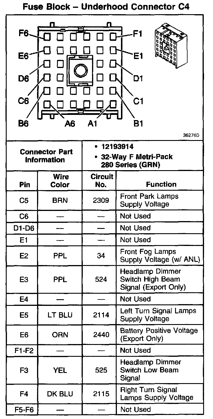 Fuse Block - Underhood Connector C4 (Part 2 Of 2):