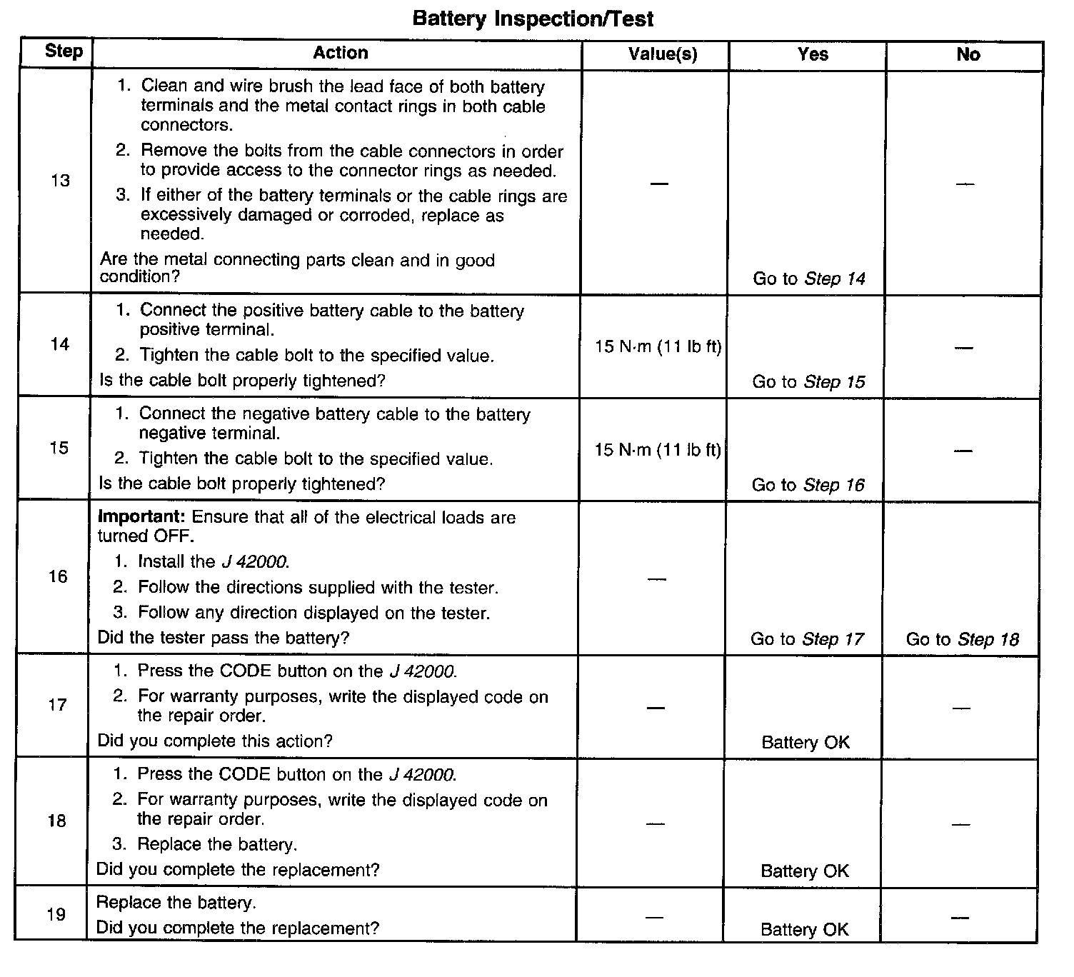 - The battery test using the J 42000 requires correct connections to the battery terminals. A failure to obtain the correct connections during the test may result in a failed test on a good battery.