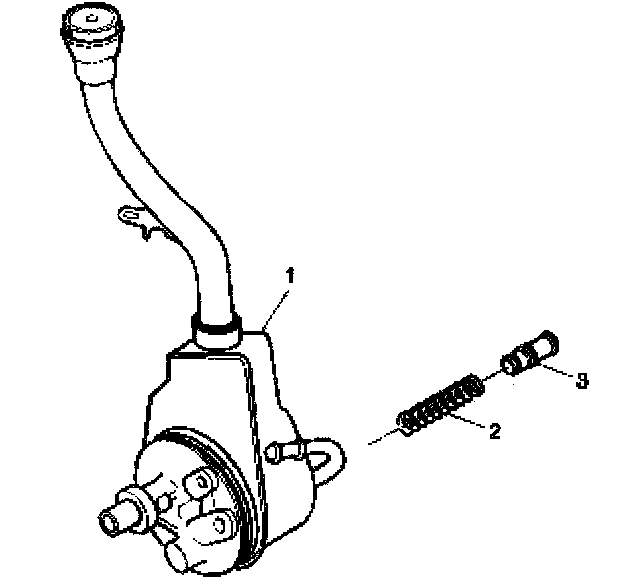 4. Remove the control valve assembly (3) and the flow control spring (2) from the pump housing assembly (1).