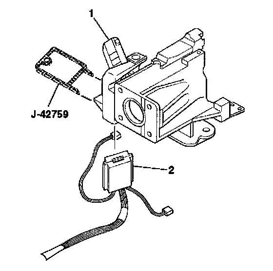 2. Remove the wire harness assembly (1) from the wire harness strap (2) and the steering column.