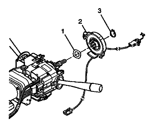 5. Remove the inflatable restraint steering wheel module coil (2) from the steering shaft assembly.