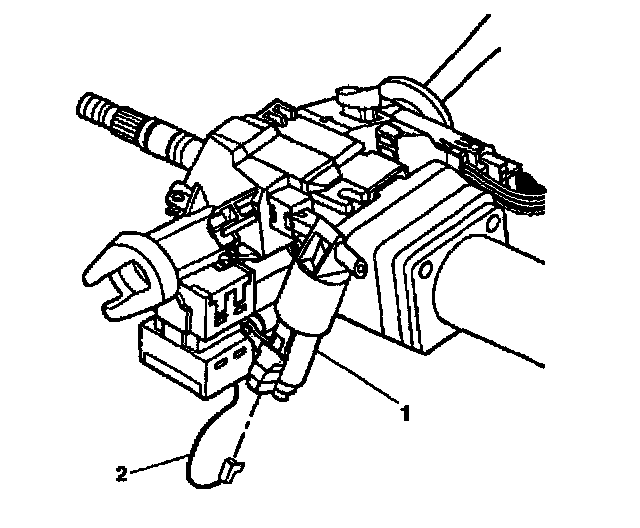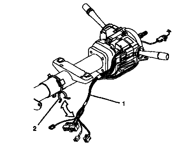 5. Remove the wire harness (1) from the wire harness straps (2) and the steering column.