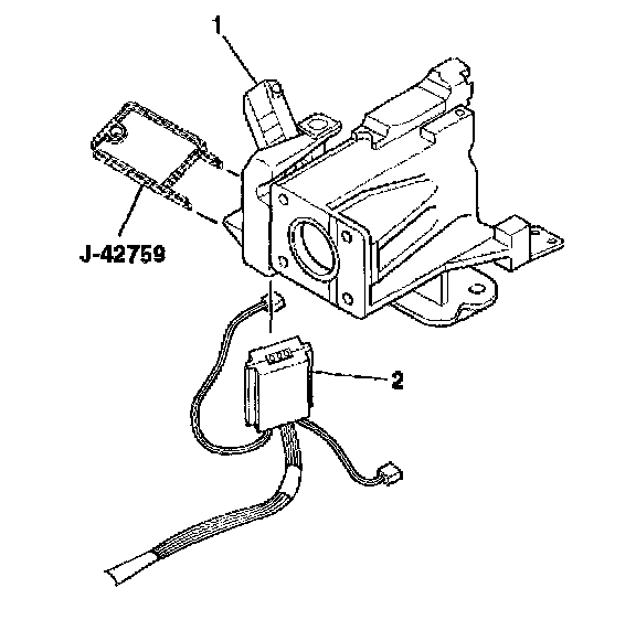 9. Disconnect the electrical connector (2) from the electric park lock (1), for vehicle equipped with floor shifters.