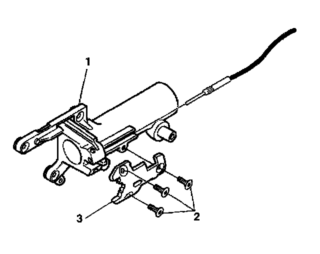 - Press the locking tab on the end of the park lock cable assembly (1) into the slot in the electronic lock module assembly.