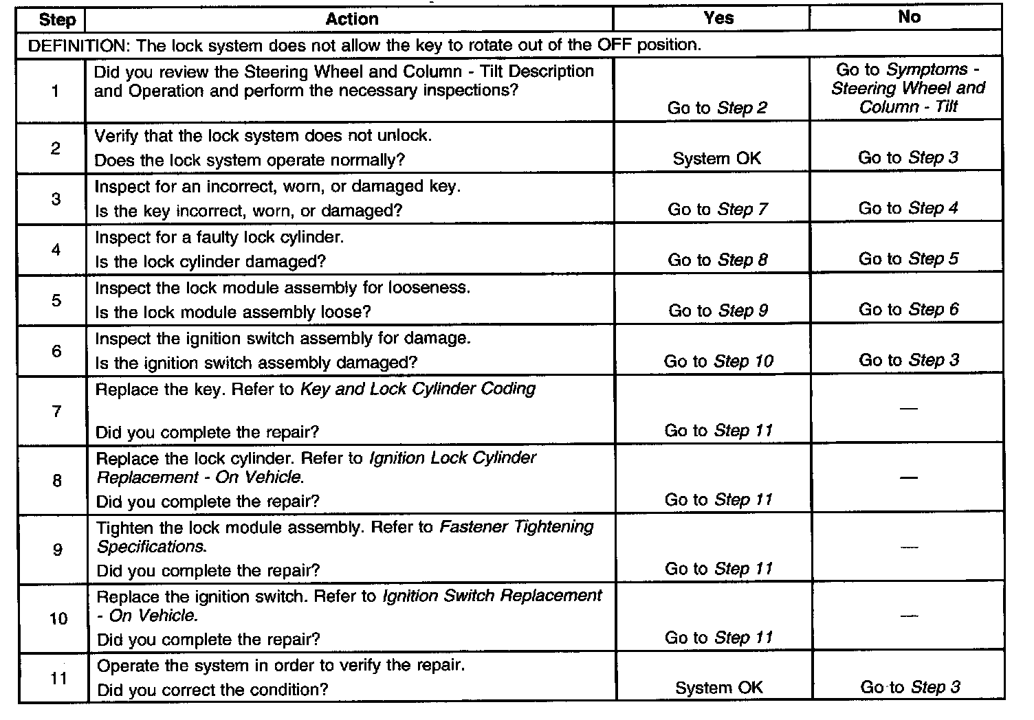 Lock System Does Not Unlock - Tilt Column