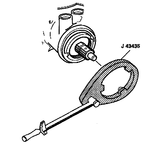 2. Remove the coupling shield retainer and the lock nut from the steering gear housing using J 43435 and a torque wrench.