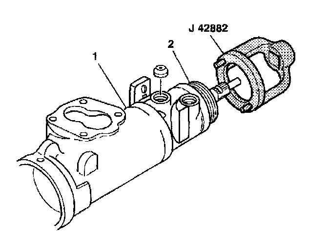 4. Connect the adjuster nut assembly (2) to the steering gear housing (1) using J 42882.