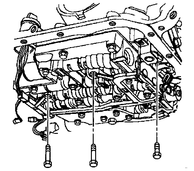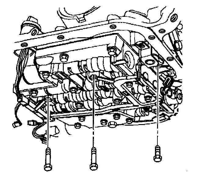 3. Install the valve body bolts, which retain the internal wiring harness and install the TCC solenoid retaining bolts.