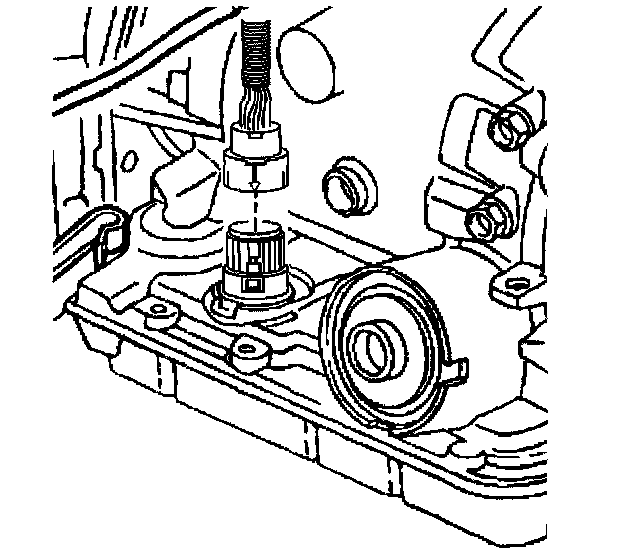 11. Using J28458, release the pass-through electrical connector from the transmission case
