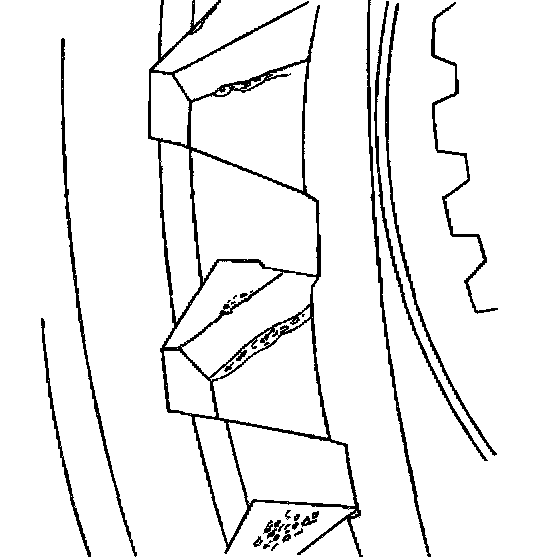The tooth edges are worn and chipped and, in some cases, affected by plastic deformation as a result of high shift loads (ragged edges). Such severe deformation of the selector teeth edges will cause hard gear shift changes. The spline flanks may also show signs of wear resembling fretting corrosion.