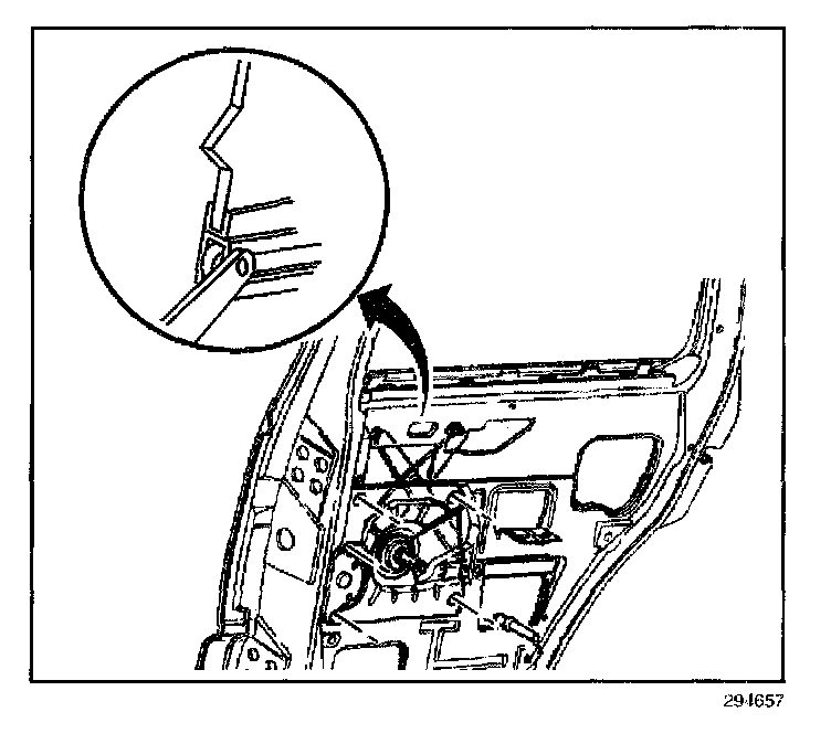 9. Install the rear window run channel.